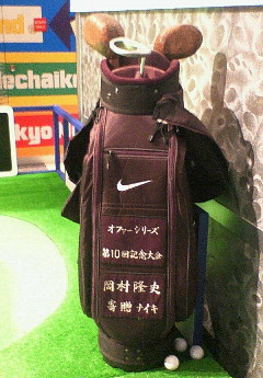 岡村のゴルフバックで、その横にグリーンがあります